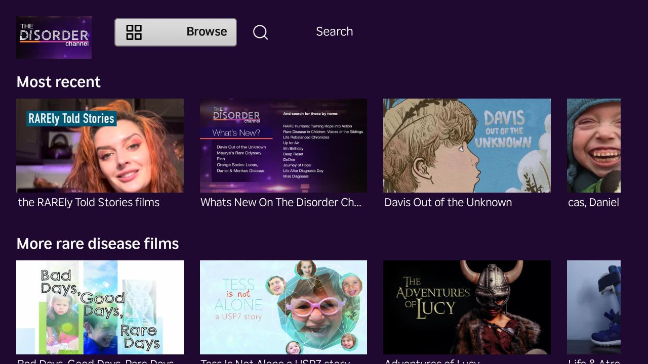 The Disorder Collection , a project of the Rare Outreach Coalition, has a curated library of over 250 films and video productions, produced by and for people living with rare diseases. This content used to be available on the popular Roku platform. However, on January 18th, 2024, Roku’s “Direct Publisher” service, which made channel creation as easy as copy-pasting a URL to a JSON feed, was officially sunset. Roku would now require all channels to build and publish their own app using the provided SDKs.